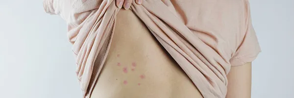 Bites on Skin: Look for itchy, red welts, often in clusters or lines, typically on exposed areas like arms, legs, or neck. Bed bug bites may appear days after being bitten and can cause allergic reactions in some people. Not everyone reacts to bites, so this alone isn’t conclusive.